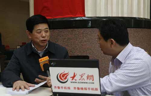 全國人大代表、山東省發(fā)展與改革委員會(huì)主任費(fèi)云良(左)接受本網(wǎng)記者專訪