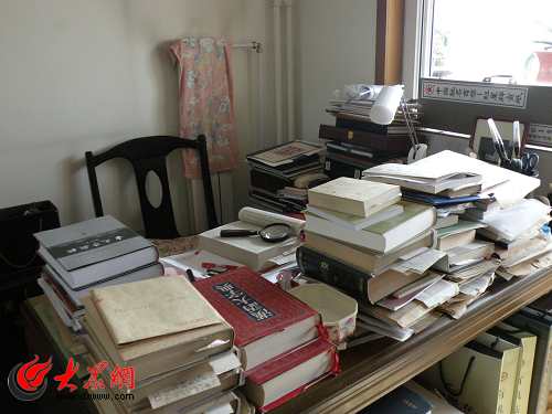 書香四溢的書房里,一張簡樸的書案旁,81歲高齡的中石先生精神矍鑠,神態(tài)安祥。今天上午,全國政協(xié)委員、著名書法家歐陽中石在其家中接受了本網(wǎng)和大眾日報(bào)的專訪。中石先生博學(xué)高雅,娓娓道來,讓記者感覺這不是一次采訪,更像是聆聽了一場精彩的講座。這是記者在中石先生書房用鏡頭記錄下的見聞,或許從我們的照片中,更能解讀出先生的博學(xué)與勤奮。圖為中石先生書桌。