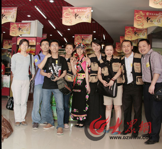 大眾網(wǎng)員工爭相與北川姑娘合影留念
