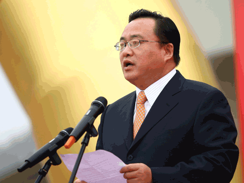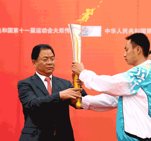 “如意”圣火威海傳遞 劉振民高舉首棒