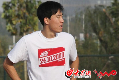劉翔身著印有“24.10.2009”的T恤。大眾網(wǎng)記者楊博 攝