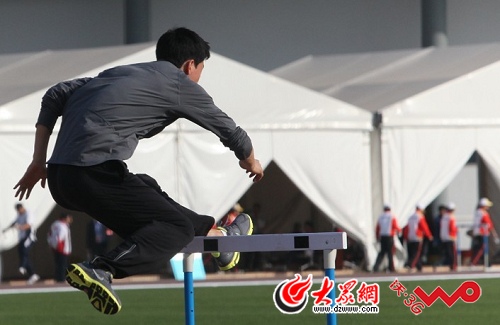 劉翔在訓練中。大眾網(wǎng)記者楊博 攝