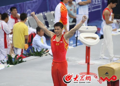 大眾網(wǎng)——山東聯(lián)通3G聯(lián)合報(bào)道(記者 閆明清 新婷 隋喬 爾印 洪棟) 9月18日晚上,十一運(yùn)會(huì)體操男子個(gè)人全能決賽在奧體中心體育館開戰(zhàn)。經(jīng)過六輪的激烈角逐,最終北京選手滕海濱以89.35分問鼎金牌,川將馮喆89.1分屈居亞軍,摘得銀牌,江蘇選手呂博得到銅牌。山東隊(duì)的黃玉國(guó)、張成龍分別以88.150分和87.900分位居每四、第五名。