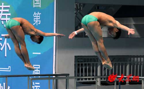 大眾網(wǎng)-聯(lián)通3G濟(jì)南聯(lián)合報(bào)道(記者 李冉 馮煒程 燕雨)10月3日上午9點(diǎn)半,全運(yùn)會(huì)跳水比賽在濟(jì)南開賽,首日比賽將產(chǎn)生男子團(tuán)體項(xiàng)目的金牌,團(tuán)體項(xiàng)目取單人一米板、單雙人三米板、單雙人十米臺(tái)5個(gè)項(xiàng)目的成績之和,其中上午進(jìn)行單人一米板、十米臺(tái)和雙人三米板,晚上進(jìn)行單人三米板和雙人十米臺(tái),金牌將在晚上8點(diǎn)左右產(chǎn)生,上午比賽結(jié)束后,廣東隊(duì)以絕對(duì)優(yōu)勢(shì)領(lǐng)先,極有可能奪取跳水首金。