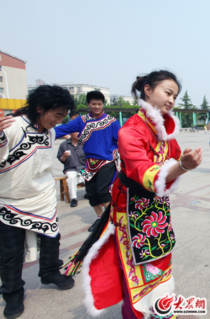大眾網(wǎng)濟(jì)南5月30日訊(大眾網(wǎng)-生活日?qǐng)?bào)聯(lián)合報(bào)道組 記者 曹亮 劉國(guó)棟)伴著歡快的羌族音樂,一群身著艷麗的羌族青年跳起了鍋莊舞,絡(luò)繹不絕的市民們?cè)诒贝ú琛案卸魃綎|之旅”的展臺(tái),一邊品茶,一邊欣賞著獨(dú)具特色的羌族舞蹈。今天上午10點(diǎn),北川茶“感恩山東之旅”活動(dòng)在南全福廣場(chǎng)正式啟動(dòng)。
