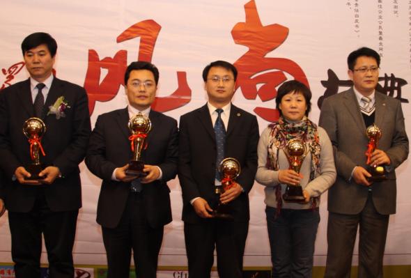 太平洋壽險(xiǎn)山東分公司辦公室主任宗群力(左二)上臺(tái)領(lǐng)獎(jiǎng)