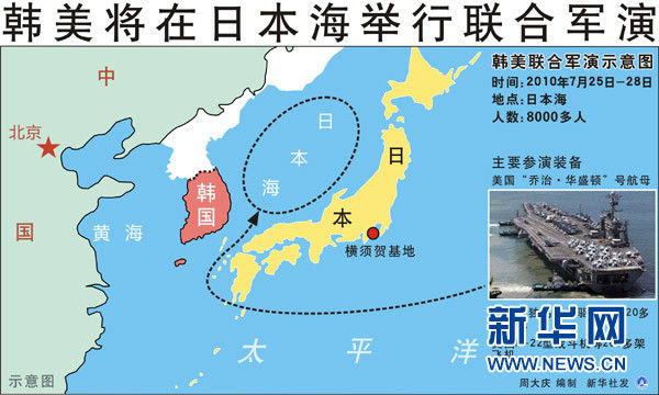 據(jù)報(bào)道,作為“天安”號(hào)事件的后續(xù)措施之一,美韓將于本月25日至28日在韓國(guó)東部海域(即日本海)舉行海上聯(lián)合軍事演習(xí)。此后,美韓還將在8月16日至26日舉行代號(hào)為“乙支自由衛(wèi)士”的聯(lián)合軍事演習(xí)等。