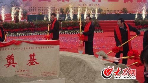 四川和山東援建單位領(lǐng)導(dǎo)共同為“山東-北川產(chǎn)業(yè)園”集體開工奠基培土