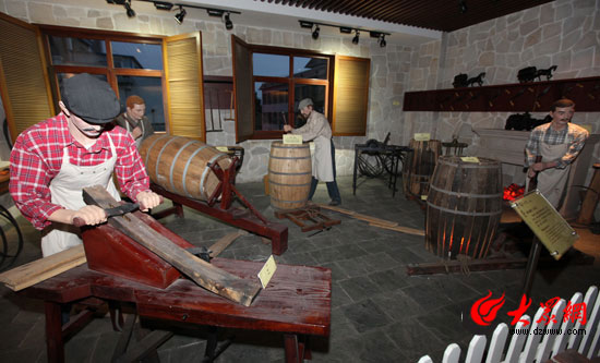 張?jiān)>莆幕┪镳^中實(shí)景展示橡木桶制作。