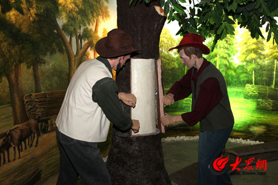 張?jiān)>莆幕┪镳^中實(shí)景展示葡萄酒軟木塞制作。