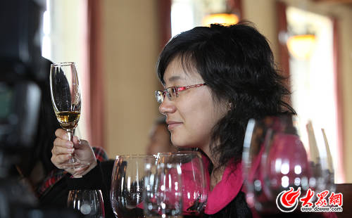 采訪團(tuán)美女記者參觀訪問(wèn)張?jiān)?guó)際葡萄酒城,感受品酒的高貴與樂(lè)趣,親身體驗(yàn)煙臺(tái)張?jiān)>莆幕臐庥魵庀。大眾網(wǎng)記者 曹亮 攝