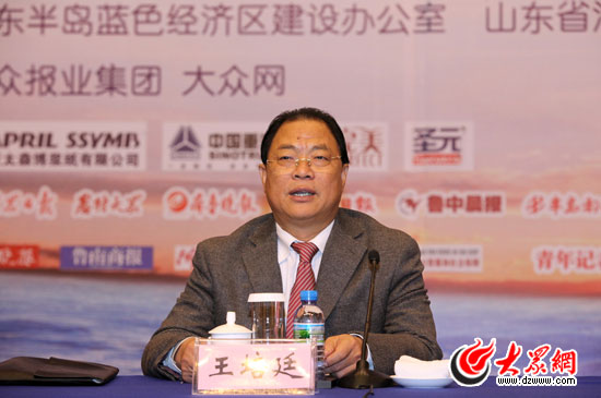 威海市委書記、市人大常委會主任王培廷介紹威海市半島藍色經(jīng)濟發(fā)展情況。大眾網(wǎng)記者 曹亮 攝