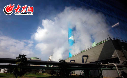 云煙繚繞的亞太森博公司平添幾分美意。大眾網(wǎng)記者 曹亮 攝