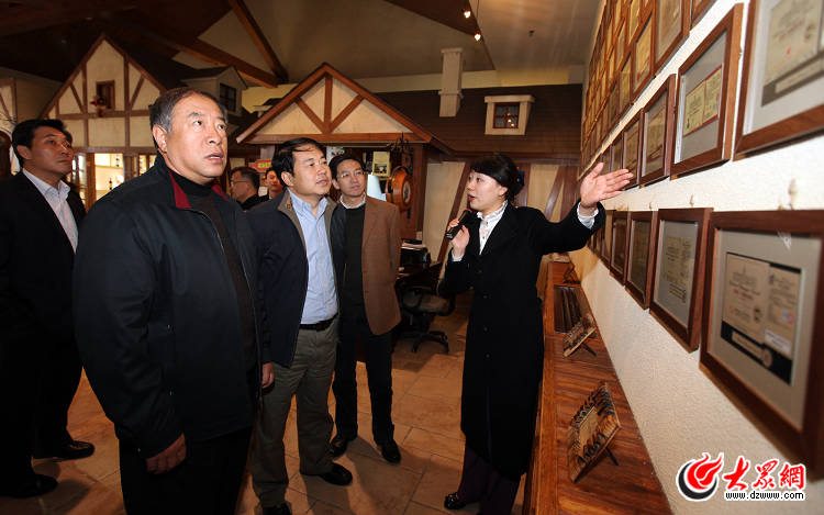 25日,采訪團(tuán)參觀訪問張?jiān)H葡萄酒城,感受濃厚的張?jiān)>莆幕。省網(wǎng)絡(luò)文化辦公室主任劉致福,煙臺(tái)市委常委、宣傳部長劉延林陪同采訪。大眾網(wǎng)記者 曹亮 攝