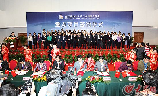 9月27日上午,第三屆山東文化產(chǎn)業(yè)博覽交易會(huì)重點(diǎn)項(xiàng)目簽約儀式在國(guó)際會(huì)展中心舉行 攝影 曹亮