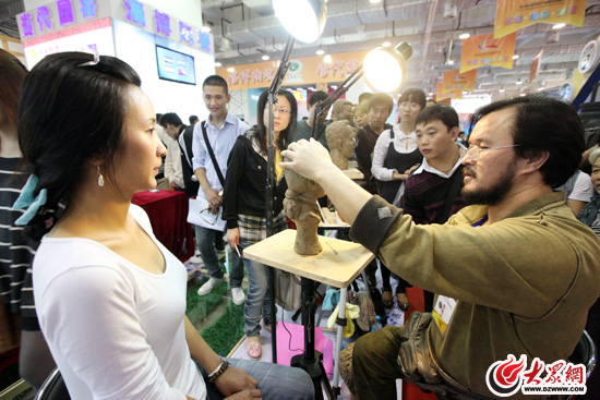 淄博館內(nèi)泥塑藝術(shù)家現(xiàn)場雕刻泥塑像