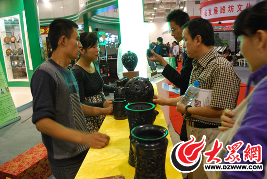 梁立霞說,這次梁子黑陶在文博會上共展出樂40多件黑陶產(chǎn)品,包括刻陶、漆陶、彩陶、鑲金絲陶和傳統(tǒng)黑陶五大類。他們生產(chǎn)的產(chǎn)品還被定為第四屆世界太陽城大會指定禮品!暗轮莺谔兆鳛榉俏镔|(zhì)文化遺產(chǎn),我們有義務(wù)把它發(fā)揚(yáng)光大,做成產(chǎn)業(yè)。而且黑陶的制作生產(chǎn)使用符合現(xiàn)在人的低碳生態(tài)理念,前景值得看好。”