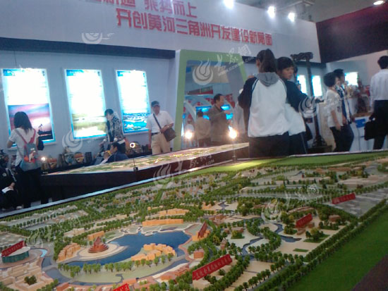 整個東營展廳核心部分是三個2米×3米的大沙盤,分別展示了黃河口文化產(chǎn)業(yè)基地、黃河口生態(tài)旅游區(qū)、孫子文化主題公園三個文化產(chǎn)業(yè)項目。這三個項目是未來東營文化產(chǎn)業(yè)發(fā)展的主要方向。東營展廳負責(zé)人告訴記者,東營展廳的策劃和創(chuàng)意緊緊圍繞黃河三角洲高效生態(tài)經(jīng)濟區(qū)上升為國家戰(zhàn)略,主打黃河從這里入海、石油之城、生態(tài)之城、黃河水城的主題,突出展示黃河入?讵毺匦沱惖淖匀伙L(fēng)光,表現(xiàn)孫武故里、呂劇故鄉(xiāng)的文化優(yōu)勢。
