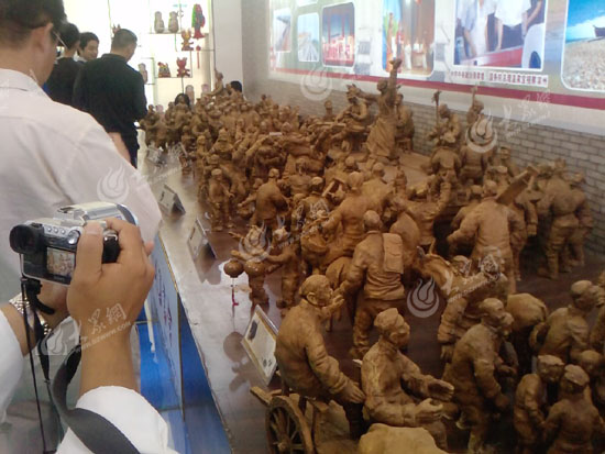 在東營展廳,記者看到這里圖片墻、沙盤模型、實物產(chǎn)品展現(xiàn)豐富,借助于聲光電等現(xiàn)代科技手段,呈現(xiàn)出一個精彩的文化東營。所有展示內(nèi)容中,黃河口文化占據(jù)了相當(dāng)大的比重,墾利縣的佛頭美陶,大吉民間手工坊制作的布老虎、月亮神貓、虎頭鞋等布藝,巨大的齊筆以及鄉(xiāng)土氣息濃郁的剪紙、品種繁多的草編、古老而又浪漫的絲帶繡,無不傳承著濃郁的黃河口特色。