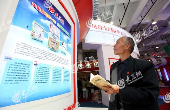 50年的讀報(bào)史,6年上網(wǎng)瀏覽新聞的經(jīng)歷,72歲的安守財(cái),是大眾報(bào)業(yè)集團(tuán)的忠實(shí)讀者。在9月27日開幕的文博會(huì)上,安守財(cái)出現(xiàn)在大眾報(bào)業(yè)集團(tuán)的展館前。他瀏覽著展館內(nèi)所有的展示欄,對(duì)集團(tuán)的每個(gè)子媒都有深深的了解。