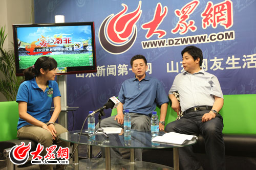 大眾網(wǎng)濟(jì)南6月11日訊(記者 韋國(guó)騫) 今天是大家與闊別四年的世界杯重逢之日,今夜是無數(shù)球迷盡情狂歡的不眠之夜。原泰山隊(duì)名將馮建國(guó),資深網(wǎng)友兼球迷、作家李恒昌做客大眾網(wǎng)“鋒言巧語”節(jié)目,與廣大網(wǎng)友一起進(jìn)入非洲時(shí)間,共度南非世界杯首夜。對(duì)于世界杯的揭幕戰(zhàn),兩位嘉賓認(rèn)為南非隊(duì)至少能憑借主場(chǎng)優(yōu)勢(shì)立于不敗,并且認(rèn)為另一場(chǎng)法國(guó)對(duì)陣烏拉圭的比賽平局可能性比較大。