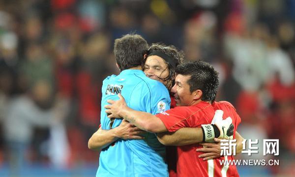 6月21日,智利隊(duì)球員慶祝。當(dāng)日,在伊麗莎白港曼德拉灣球場舉行的2010南非世界杯足球賽H組第二輪比賽中,智利隊(duì)以1比0戰(zhàn)勝瑞士隊(duì)。新華社記者楊磊攝