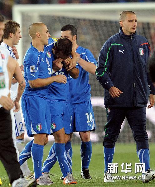 6月24日,意大利隊(duì)球員夸利亞雷拉(右三)賽后傷心不已。當(dāng)日,在約翰內(nèi)斯堡埃利斯公園球場(chǎng)進(jìn)行的南非世界杯F組第三輪比賽中,意大利隊(duì)以2比3負(fù)于斯洛伐克隊(duì),無(wú)緣16強(qiáng)。新華社記者王毓國(guó)攝
