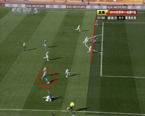 慢鏡頭比賽第50分鐘,斯洛伐克中場謝斯塔克和小魏斯在右路連續(xù)做出精彩配合吸引了數(shù)名防守球員后,傳出一記過頂球,中路跟進的維泰克頭球破門叩關(guān)得手。然而,根據(jù)慢動作回放,在謝斯塔克傳球的瞬間,維泰克和另外一名進攻球員都處于越位位置。