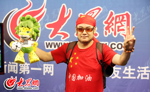 對(duì)于中國(guó)球迷來(lái)說(shuō),能看到中國(guó)隊(duì)到世界杯賽場(chǎng)上踢出風(fēng)采是最大的心愿。球迷“蘇格拉底”在世界杯期間走上了全國(guó)巡游之路,他手里舉著的國(guó)旗,紅色的頭巾以及印著“中國(guó)加油”的文化衫,都表明了對(duì)中國(guó)足球的癡心不改。他表示,中國(guó)球迷會(huì)永遠(yuǎn)支持中國(guó)足球,支持它沖出亞洲走向世界。