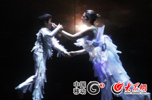 大眾網(wǎng)-移動G3上海5月4日訊(特派記者 李冉 吳哲)一個女孩在上海遇見天使,于是上演了一段穿越時空、看見未來的非凡旅程。記者在世博園后灘廣場觀看世博主題演繹秀——城市之窗。這部室內(nèi)大型奇景多媒體高空特技故事劇,由兩岸三地、歐、美頂尖藝術(shù)家全力創(chuàng)作,在世博園區(qū)惟一的6300平米專屬大舞臺上演。溫情的故事、全球唯一超大型多重立體旋轉(zhuǎn)魔方舞臺,以及演員們動感的表演,生動演繹了城市的生命力和人與人之間的愛,臺灣歌星張韶涵在劇尾現(xiàn)場演唱了為世博特別創(chuàng)作的《隱形的翅膀》世博版,將劇情推向高潮。
