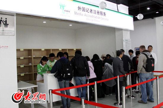 大眾網(wǎng)上海4月26日訊 (特派記者 吳哲 劉國棟)今天,離上海世博會(huì)正式開幕還有五天,也是媒體證件領(lǐng)取的第一天,雖然上海的天空又再次飄起了小雨,但位于浦東新區(qū)浦東南路的上海世博會(huì)注冊(cè)中心門前一早還是排起了長長的隊(duì)伍。離領(lǐng)證的時(shí)間還有半小時(shí),來自境內(nèi)外的近300名注冊(cè)記者就趕到了現(xiàn)場(chǎng),一位來自燕趙都市報(bào)的記者表示:“世博注冊(cè)的媒體很多,早領(lǐng)到證件心里踏實(shí)些。”