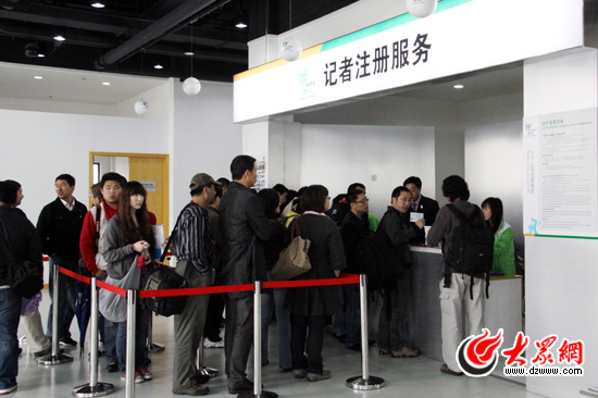 第一批記者領(lǐng)到了各自的注冊(cè)證件。