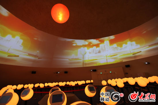 展館的主體建筑高24米,分成兩個獨立而又互相連接的空間:“光之廳”與“創(chuàng)新殿”。一邊是用原石砌造,即直接從采石場上挖來,不經(jīng)任何加工的石料壘砌的創(chuàng)新殿;而另外一邊則用透明的玻璃覆蓋的光之廳。走進“光之廳”,沿著弧狀的墻壁,通過多媒體展示,游客們將領(lǐng)略猶太民族擁有無窮魅力的發(fā)展歷史。艾然介紹說:“墻壁上展示了以色列的死海等著名景觀,還有它的人文風(fēng)情。大家看到希伯來語,和中國古代字體一樣,是豎著排列,按從左往右的順序?qū)懙!卑粌叭灰幻袊浴?BR> 整個以色列館的高潮部分是“創(chuàng)新廳”。艾然說:“一場由漂浮在動態(tài)空間里的燈球所呈現(xiàn)的360度視聽演出將在這里演繹。你們慢慢欣賞吧!奔s10分鐘的360度多媒體展示,每一個光球都代表著以色列在科學(xué)、音樂、文學(xué)等各個領(lǐng)域內(nèi)的創(chuàng)新和技術(shù)突破。這也突出了“創(chuàng)新讓生活更美好”的以色列館主題,以及中以兩國在未來的緊密聯(lián)系。