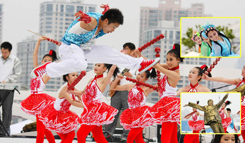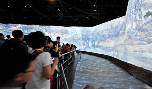 5月2日,中外觀眾依然最熱捧上海世博會(huì)中國館的“鎮(zhèn)館之寶”——巨幅放大電子動(dòng)態(tài)版的北宋畫家張擇端名作《清明上河圖》。此世博版的《清明上河圖》高6.3米,長130余米,約是原圖的30倍,需要12臺(tái)電影級(jí)的投影儀同時(shí)工作。整個(gè)活動(dòng)畫面以4分鐘為一個(gè)周期,盡展宋朝盛世的都市日夜風(fēng)情。中新社記者 賈國榮 攝