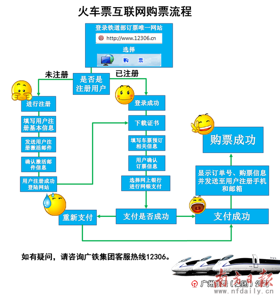記者發(fā)現(xiàn),一則由@廣州鐵路原創(chuàng)的《火車票互聯(lián)網(wǎng)購票流程圖》(如圖,網(wǎng)絡(luò)圖片)在其騰訊微博發(fā)布后,被各大鐵路局的官方微博紛紛轉(zhuǎn)發(fā),被大量網(wǎng)友收藏和評論。
