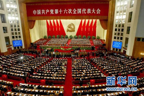 2002年11月8日,中國共產(chǎn)黨第十六次全國代表大會(huì)在北京人民大會(huì)堂隆重開幕。這是大會(huì)會(huì)場。新華社記者 劉衛(wèi)兵 攝