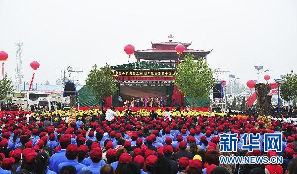 當(dāng)日,慶祝中國共產(chǎn)黨成立90周年優(yōu)秀戲劇全國基層巡演活動在河南省濮陽市啟動,整個(gè)巡演活動將從5月持續(xù)到7月。首場演出豫劇現(xiàn)代戲《村官李天成天》,在該劇原型、全國優(yōu)秀共產(chǎn)黨員李連成所在的濮陽縣西辛莊上演。 新華社發(fā)(徐洪波 攝)