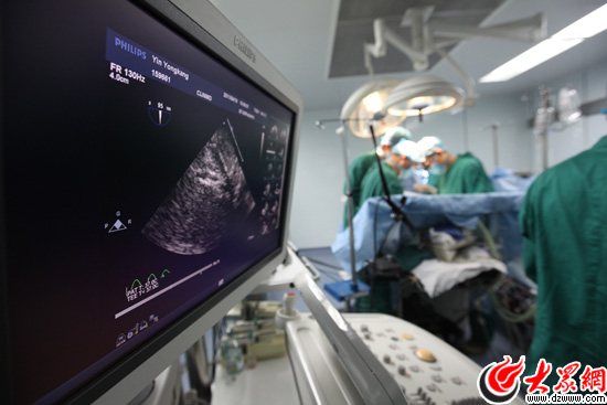 來源:大眾網(wǎng)10:00,手術正在進行關鍵的一步,醫(yī)生正在對主動脈狹窄段進行加寬、補片。