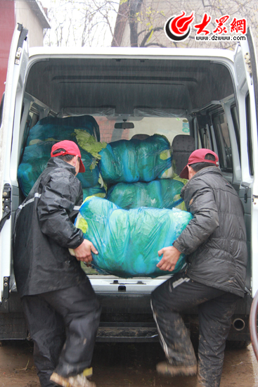 經(jīng)過兩個小時的搬運,“愛心”白菜被裝滿車。