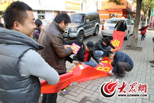 “我們從大眾論壇上看到買愛心白菜的倡議帖,就約好開車一塊來,有從章丘的,也有從郭店等郊區(qū)過來的,我們還專門做了橫幅。”趁菜農(nóng)還沒有到,車友們七手八腳把自制橫幅“買顆愛心大白菜 暖暖菜農(nóng)心”掛起做宣傳,車友老許帶來了導游用的麥克掛在腰間,要幫菜農(nóng)“好好吆喝兩嗓子”。