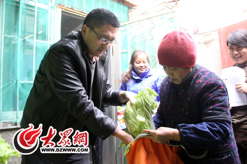 考慮到一些困難家庭運(yùn)菜不方便,除了給到現(xiàn)場的困難居民分發(fā)大白菜外,大眾網(wǎng)記者和街道辦事處的負(fù)責(zé)人還專程上門,為一些困難居民送上了愛心白菜。