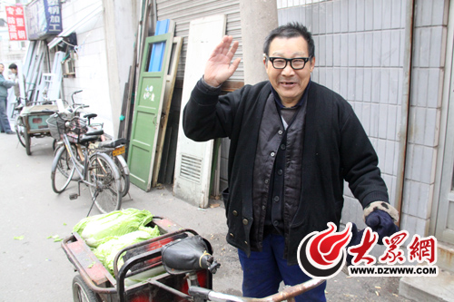 老大爺領(lǐng)到菜后一個勁的說感謝