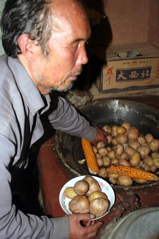 李國峰將煮熟的土豆取出鍋。(資料圖片)