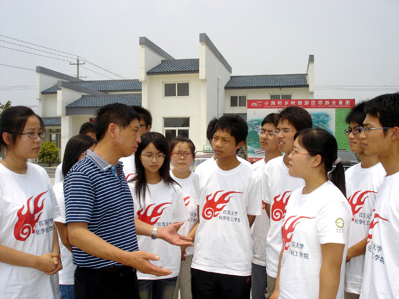 這是2009年,沈浩(前左二)與在小崗村進(jìn)行社會實(shí)踐的大學(xué)生交談。新華社發(fā)