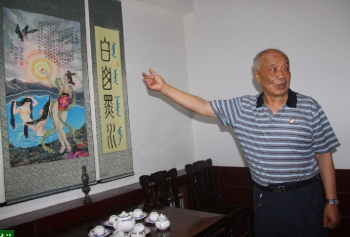 趙老興致盎然地講述滿族起源“三圣女浴于長白天池”的傳說故事。
