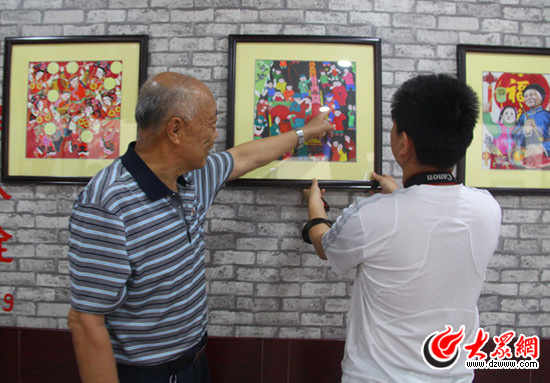 趙朝勛向記者介紹農民畫畫作里蘊含的民族文化