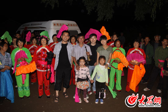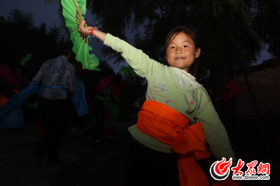 劉國棟 來源: 大眾網(wǎng)[提要] 柳樹前,燈底下,綠綢帶,花衣裳,老少爺們扭起來。6月27日晚8點(diǎn)左右,“黨旗漫卷中國紅——走進(jìn)56個民族家庭大型接力式采風(fēng)活動”采訪團(tuán)行駛到本溪縣黃嶺村時,路遇當(dāng)?shù)卮迕袂描尨蚬脑诼愤叴孱^排演東北大秧歌,黃嶺村的村長邢建國告訴記者這是村民為慶祝建黨九十周年自發(fā)組織的慶;顒。