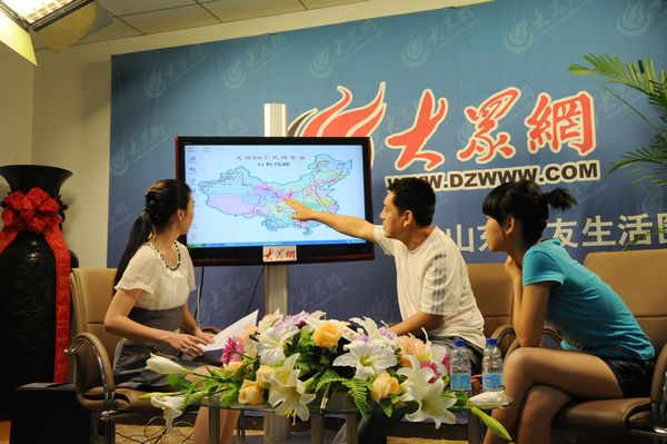 大眾網(wǎng)特約記者施曉亮在觸摸屏上講述行程路線