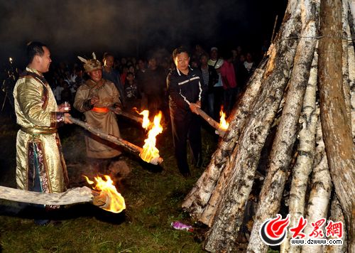 大眾網(wǎng)-聯(lián)通3G諾敏鎮(zhèn)7月8日?qǐng)?bào)道 (特派記者 劉國(guó)棟)每年的6月18日是鄂倫春民族傳統(tǒng)的節(jié)日——篝火節(jié)。這一天,鄂倫春人都要點(diǎn)燃篝火,歡歌舞蹈,歡慶自己民族的節(jié)日。7月8日,“黨旗漫卷中國(guó)紅——走進(jìn)56個(gè)民族家庭大型接力式采風(fēng)”活動(dòng)采訪團(tuán)來(lái)到內(nèi)蒙古呼倫貝爾市鄂倫春旗諾敏鎮(zhèn),這里正在舉行鄂倫春自治旗首屆獵民運(yùn)動(dòng)會(huì),為了紀(jì)念首屆獵民運(yùn)動(dòng)會(huì)的召開(kāi),篝火節(jié)被推遲到了當(dāng)天晚上舉行,采訪團(tuán)也有幸參加了鄂倫春族的這一盛大節(jié)日。