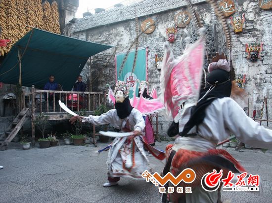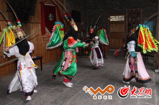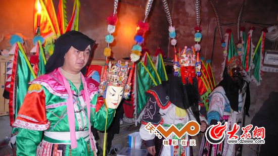 儺戲演員在上臺前扮裝(施曉亮攝)